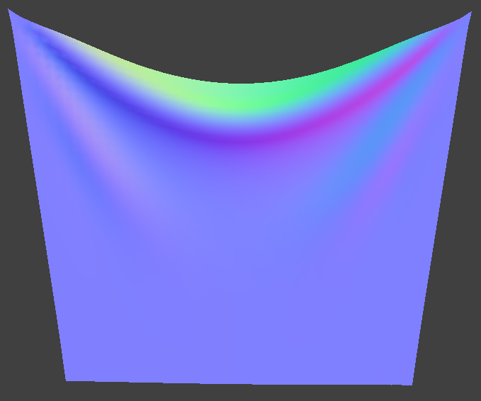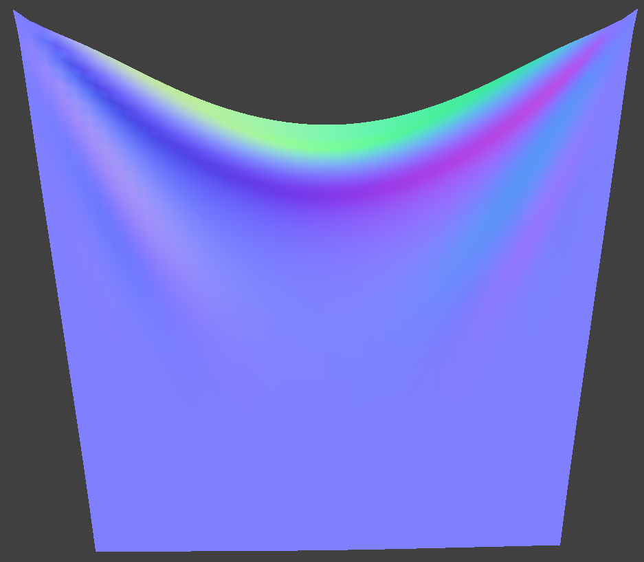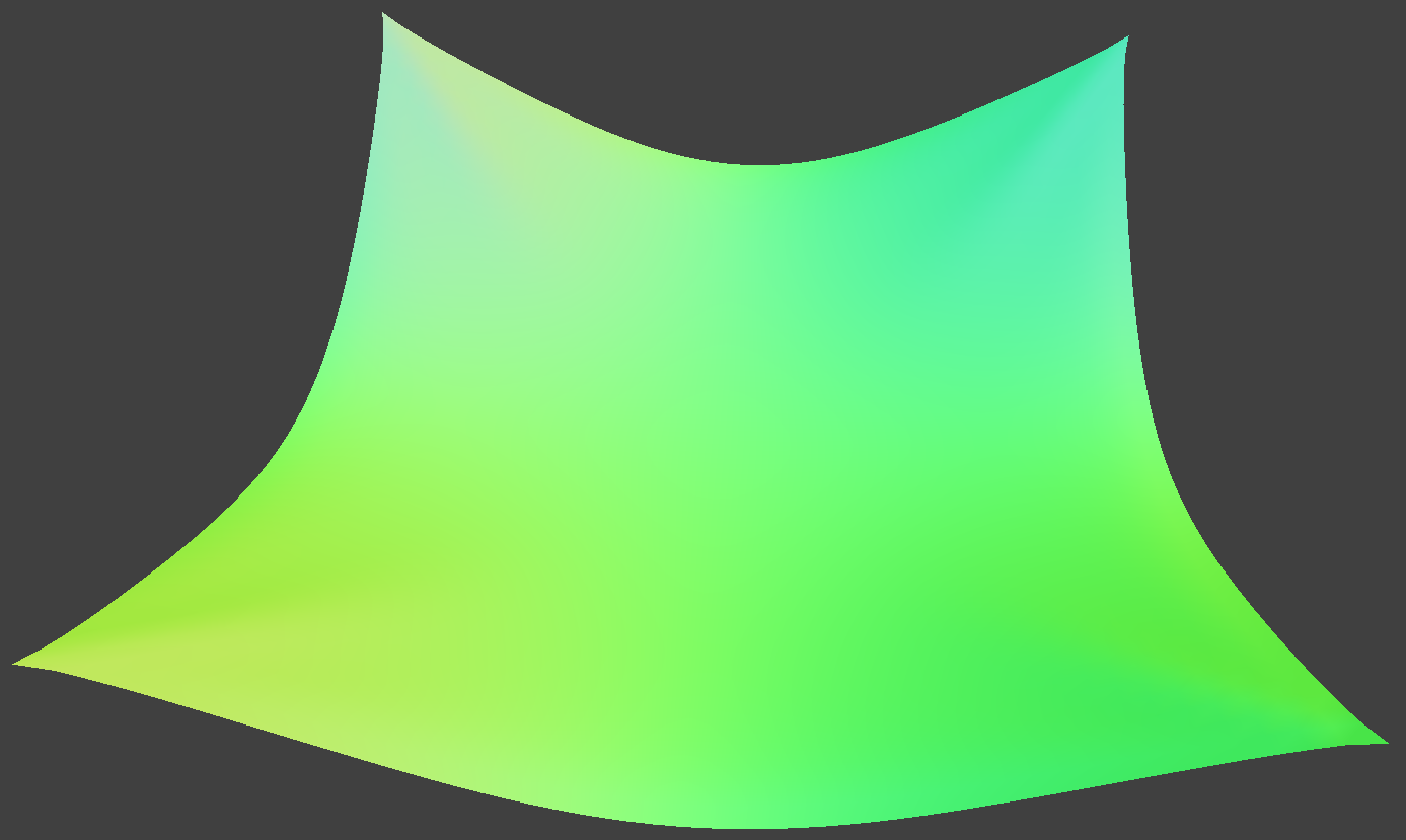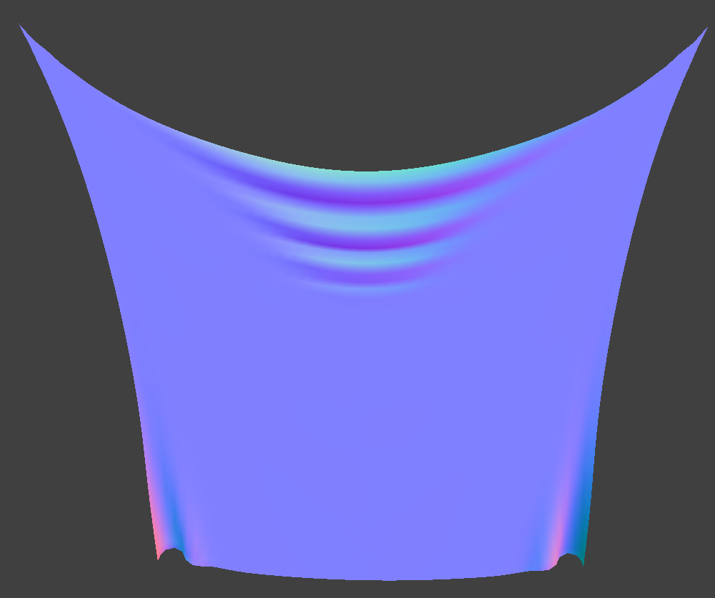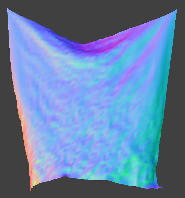 Pinned_4 was rendered using the model's normals and the default parameters (all spring types enabled, density: 15 g/cm^2, ks: 5000 N/m, damping: 0.2%, gravity vector: (0, -9.8, 0) m/s^2)