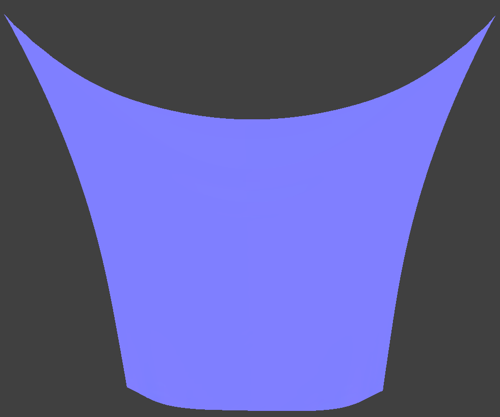 Cloth is not "weighed down" as much, so there's barely a curve at the top, with it just slightly deforming. |